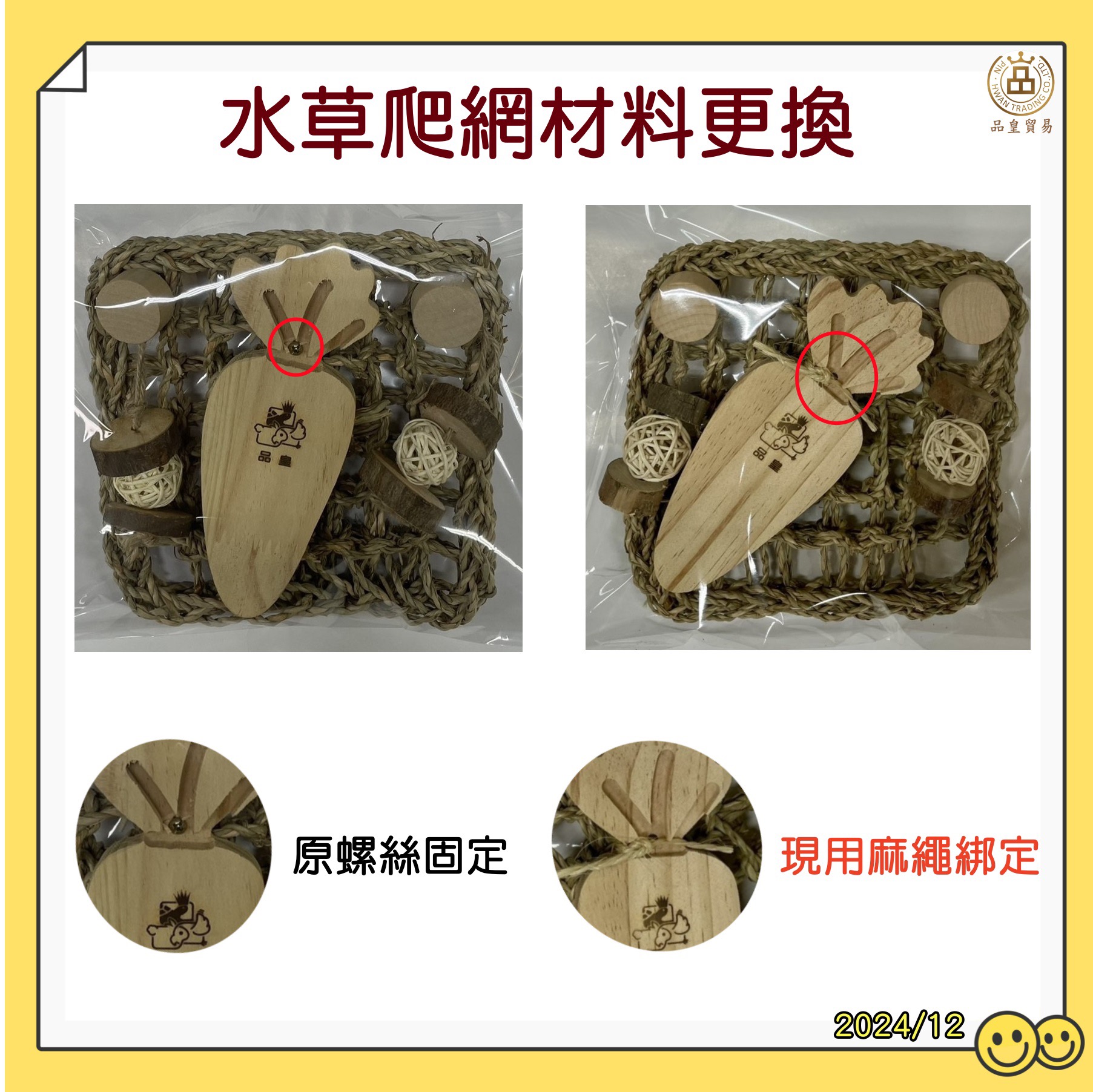 由天然水草繩、松木、原木及藤球組成的”天然啃咬玩具”