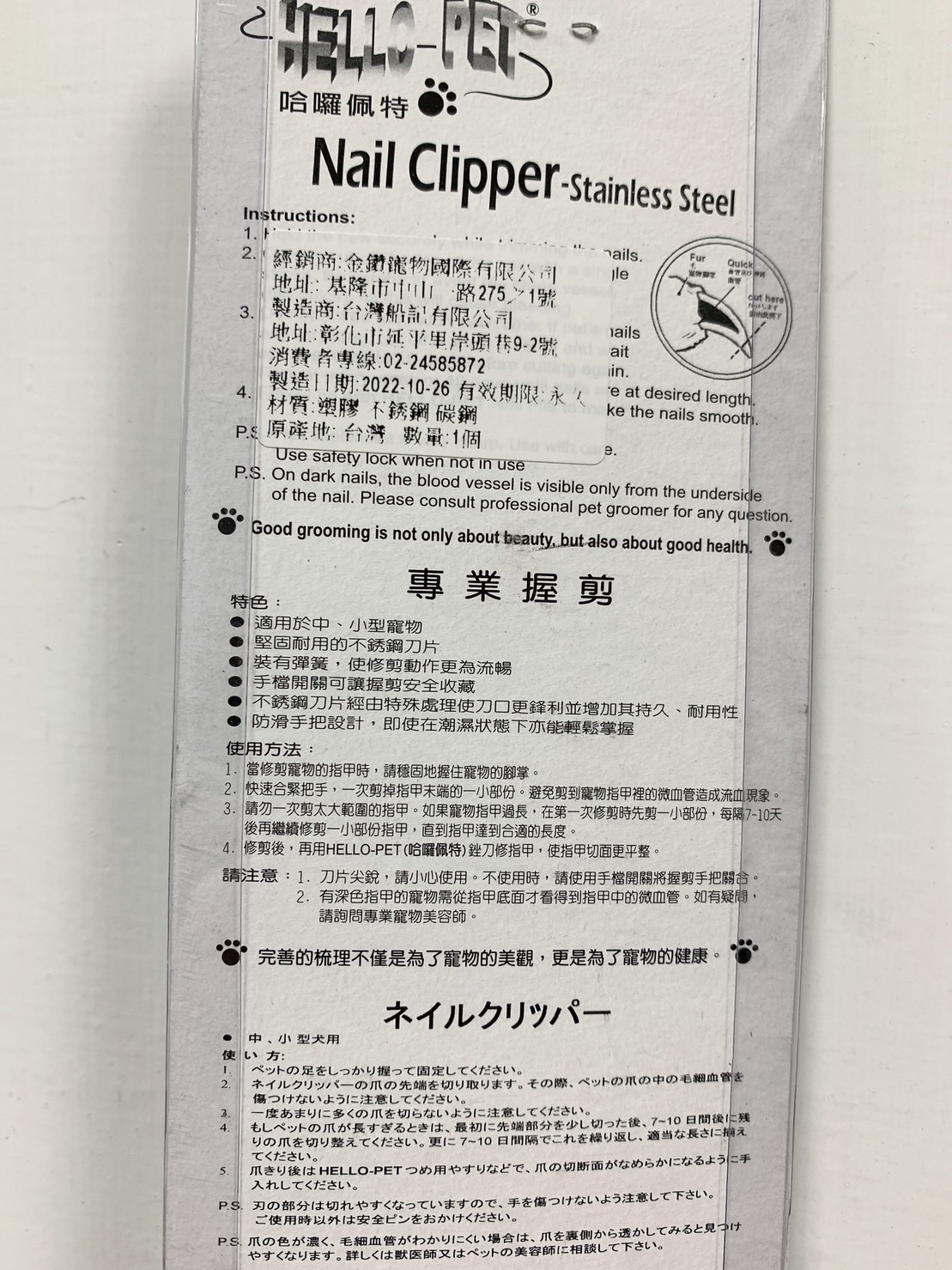 Hello-Pet 撞色指甲剪 (小)